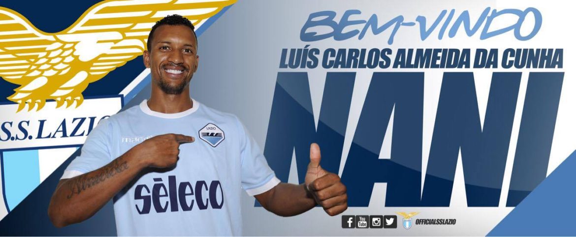 Questa mattina l’arrivo a Roma, ora l’ufficialità: Nani è un nuovo giocatore della Lazio. Ecco il comunicato del club biancoceleste:”La S.S. Lazio comunica di aver acquisito a titolo temporaneo con diritto di riscatto l’atleta Luís Carlos Almeida da Cunha “Nani” dal Valencia CF”.